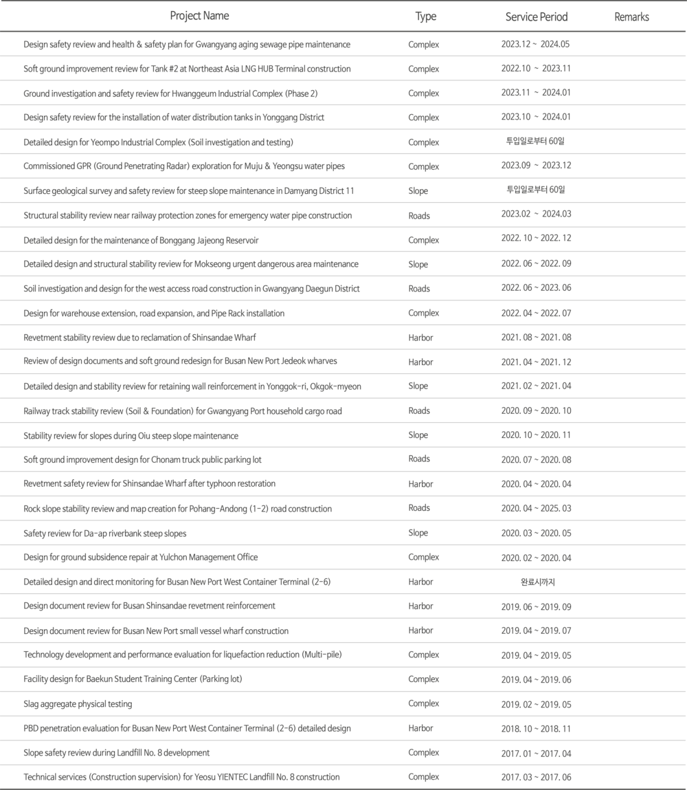 Head Office27, Hangman 13-ro, Gwangyang-si, Jeollanam-do, Republic of KoreaTel: +82-61-794-2122 / +82-61-795-2123 | Fax: +82-61-794-2123 | E-mail: seacreen@hanmail.netCopyright © 2020 Mirae Geotech Lab Inc. All Rights Reserved